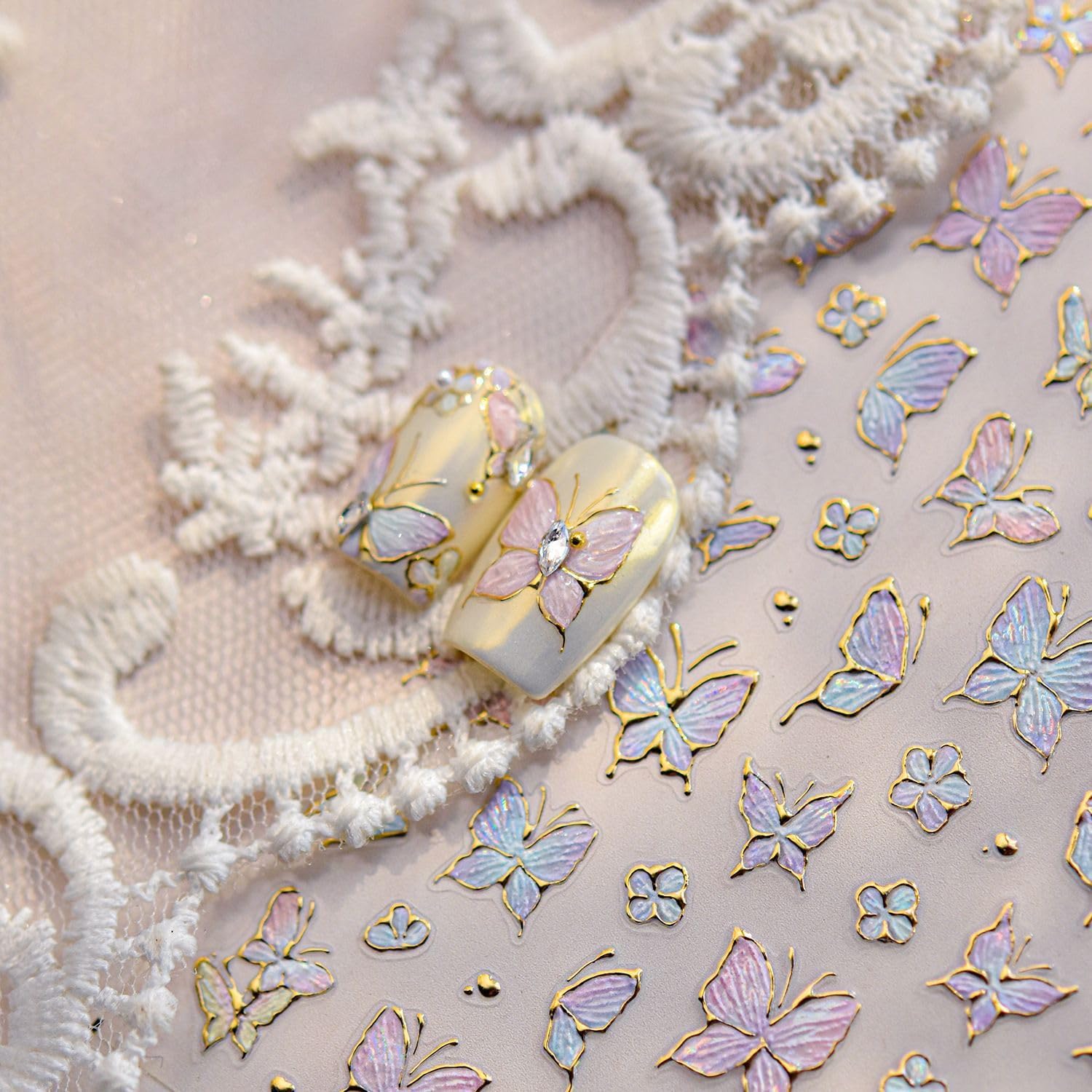 - Butterfly Nail Decals: 1 sheets of 5D Embossed colorful butterfly nail stickers give people an intuitive and advanced exquisite feeling. spring summer design nail decals are perfect for decorations for your false nails.that will make your fake nails more realistic and interesting!