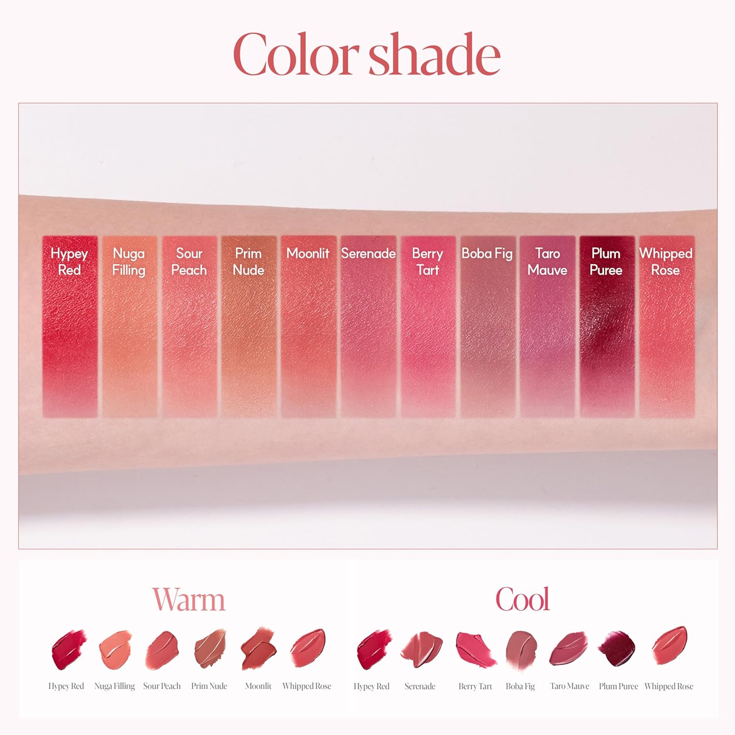 - [Soft, creamy texture for effortless, smooth application] : The soft and creamy texture spreads evenly across the lips without tugging, delivering a silky, lightweight feel that stays comfortable throughout the day.