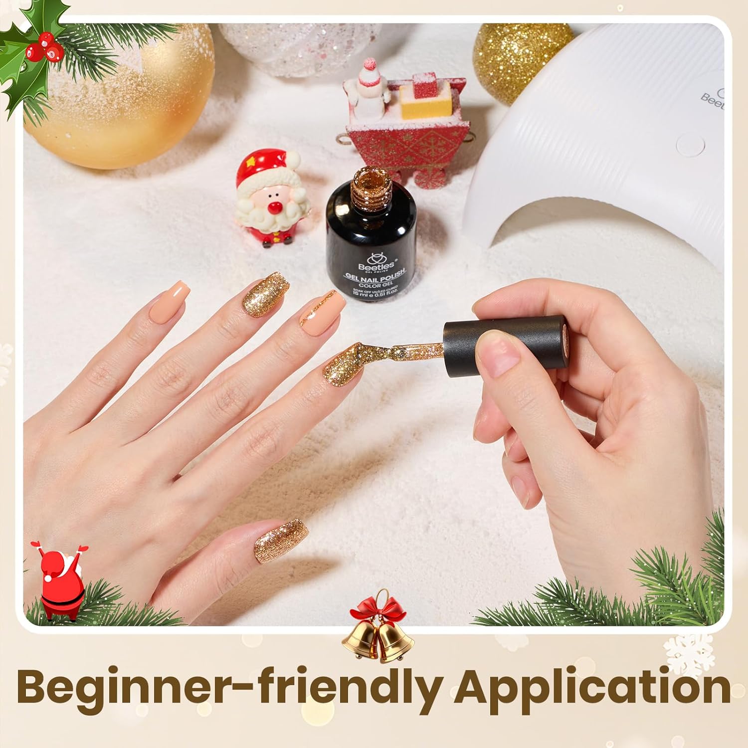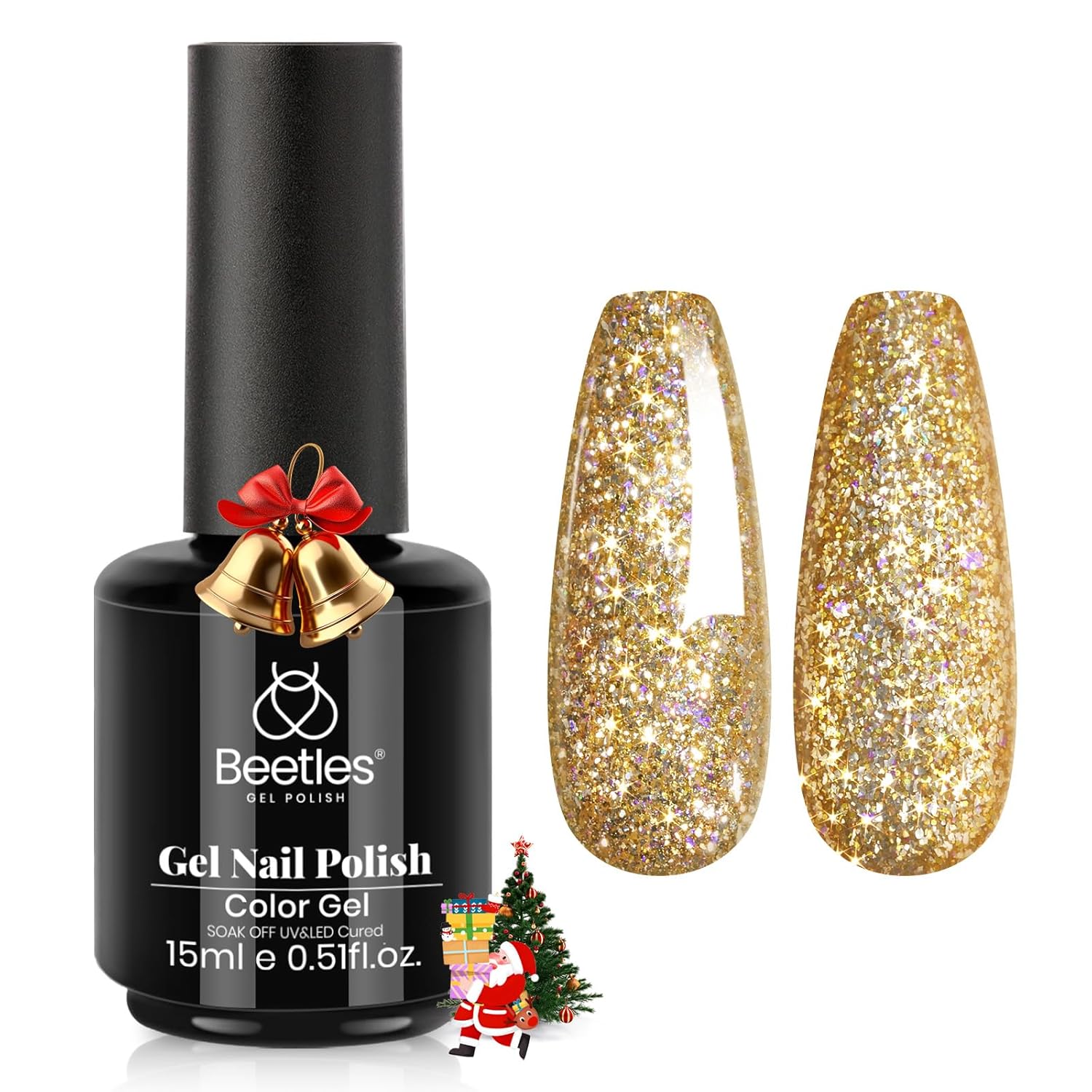 - Brilliant Gold Glitter:Beetles glitter gel polish is packed with ultra-fine holographic glitter for a dazzling, multidimensional shine that catches every light—perfect for holiday parties, weddings, or year-round glam.
