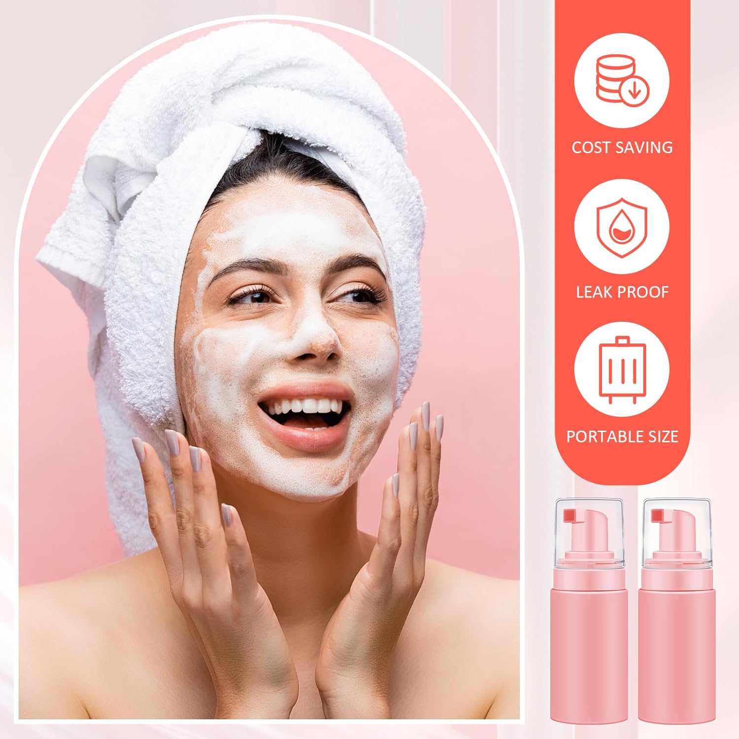 50pcs Foam Pump Bottles 1oz/30ml Plastic Mini Empty Dispenser DIY Travel Face Cleanser Mousse Soap Foam Bottle Refillable Hand Soap Eyelash Shampoo Cosmetics Portable Travel Pack(Pink)