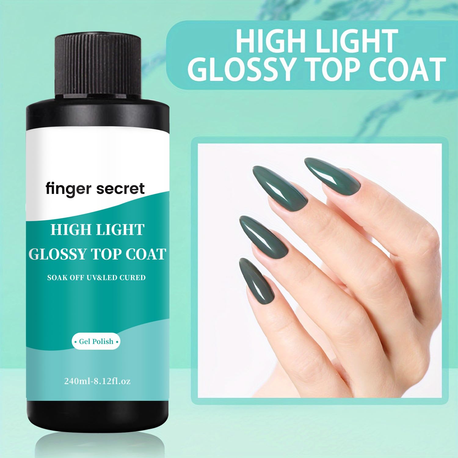 - Finger Secret Top Coat Gel: The high gloss shiny top coat 240ml/8floz, easy to put into the makeup bag to carry around, home or travel can be reapplied at any time, maintain the high gloss shiny top coat condition of nails.