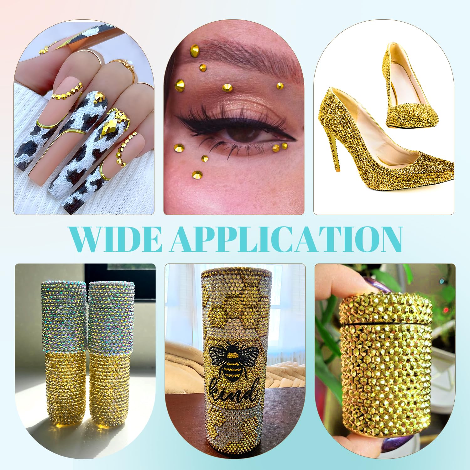 - WIDE APPLICATION -- These sparkling iridescent resin crystals are perfect for creating dazzling looks. Use them for bedazzling DIY crafts like shoes, tumblers, mugs, bottles, phone cases, popsockets, scrapbooks, photo frames, diamond paintings, greeting cards, bags, glasses, guitars, keychains, hats, masks, hair clips, bracelets, wristbands, clothing, wedding dresses, and more. Apply it to what you want to bling!