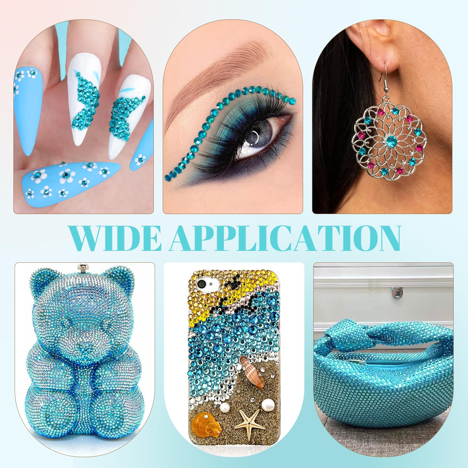 6100Pcs Resin Rhinestones for Crafting with 2Pcs 10ml B7000 Jewelry Glue, 1 Box Flatback Crystals Diamond (Teal Blue) for Bedazzling Crafts DIY Nail Art,Non Hotfix Gems for Clothing Shoes Tumblers