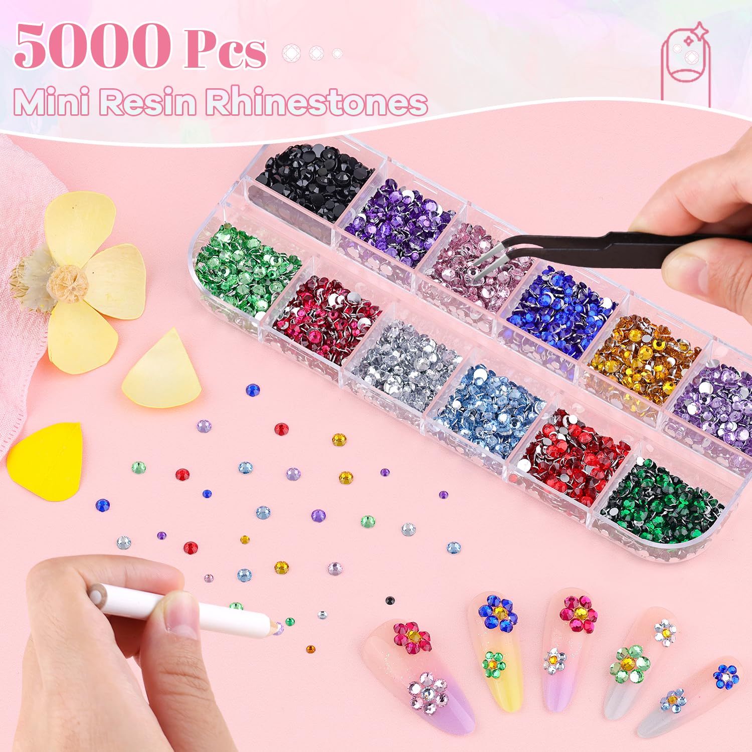 5000Pcs Small Resin Rhinestones for Nail Art, Colorful Rhinestone 2/3MM Flatback Bedazzling Gems, Nail Rhinestones and Gems Crystals Charms for Acrylic Tips Manicure Decor
