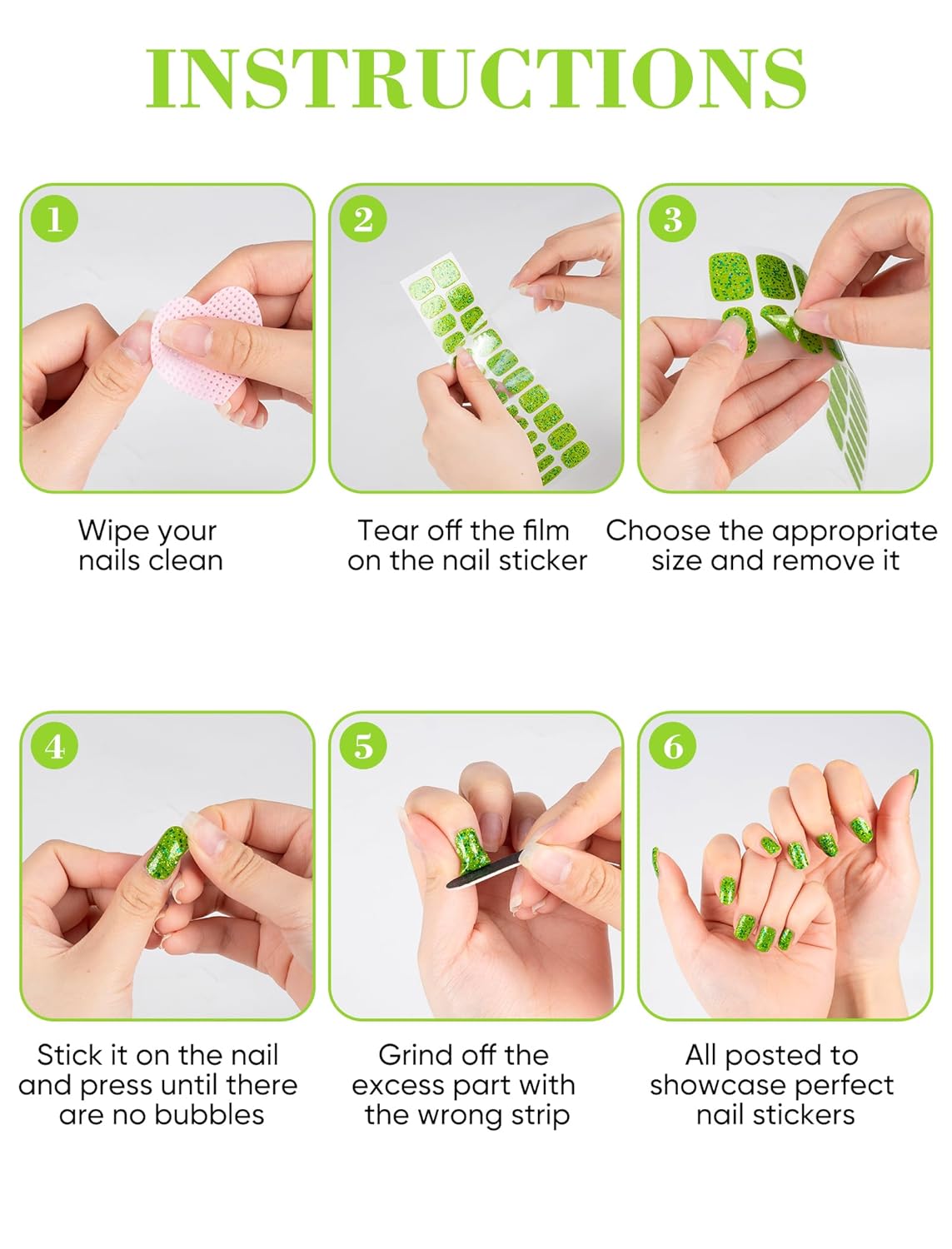- Easy Application & Removal: No need to roughen your nail surface before applying. Simply clean your nails with the included tools, apply the stickers, and shape them with the nail file. Removal is effortlessâjust peel off without soaking