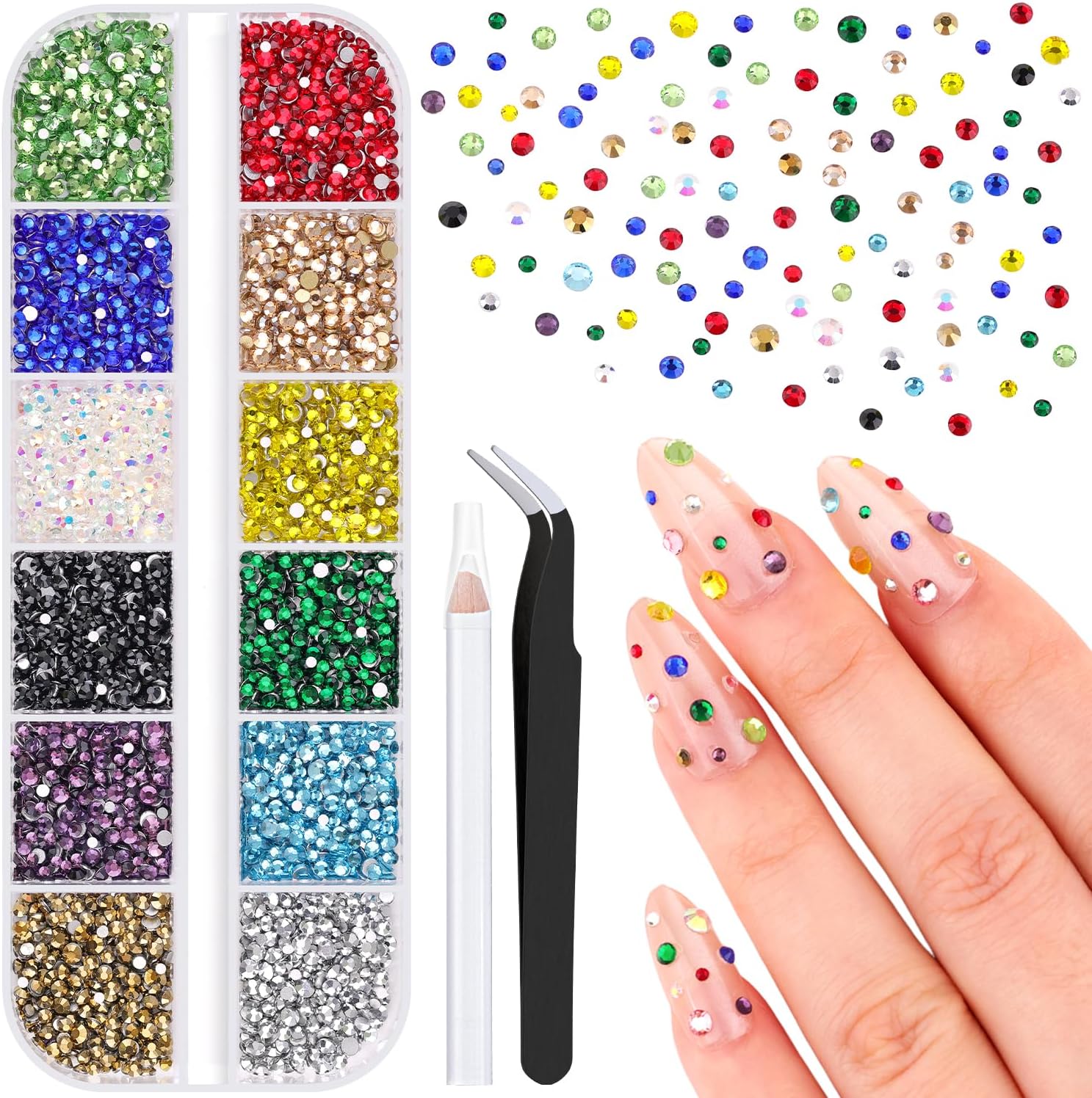- Package Content -- One package includes approx. 4200 pcs (1.2/1.5/2/2.8 mm) Multicolors mini nail gems, 1 tweezers, 1 pick-up pencil. The nail kit with sufficient tools can easily meet your nail design needs at home