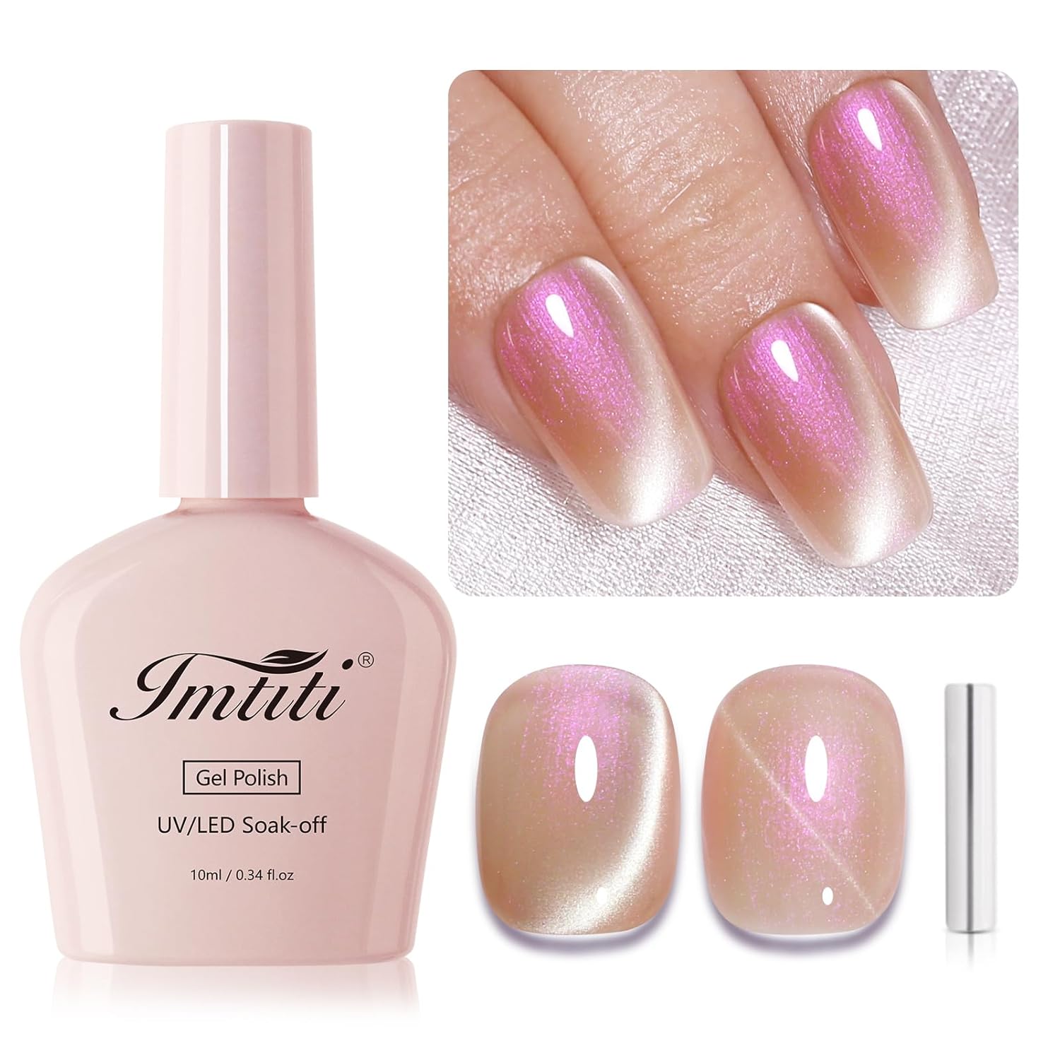 Imtiti Aurora Cat Eye Gel Polish, Pearl Nude Pink Holographic Glitter Magnetic UV Soak Off Gel Nail Polish (0.34 Fl Oz-995)