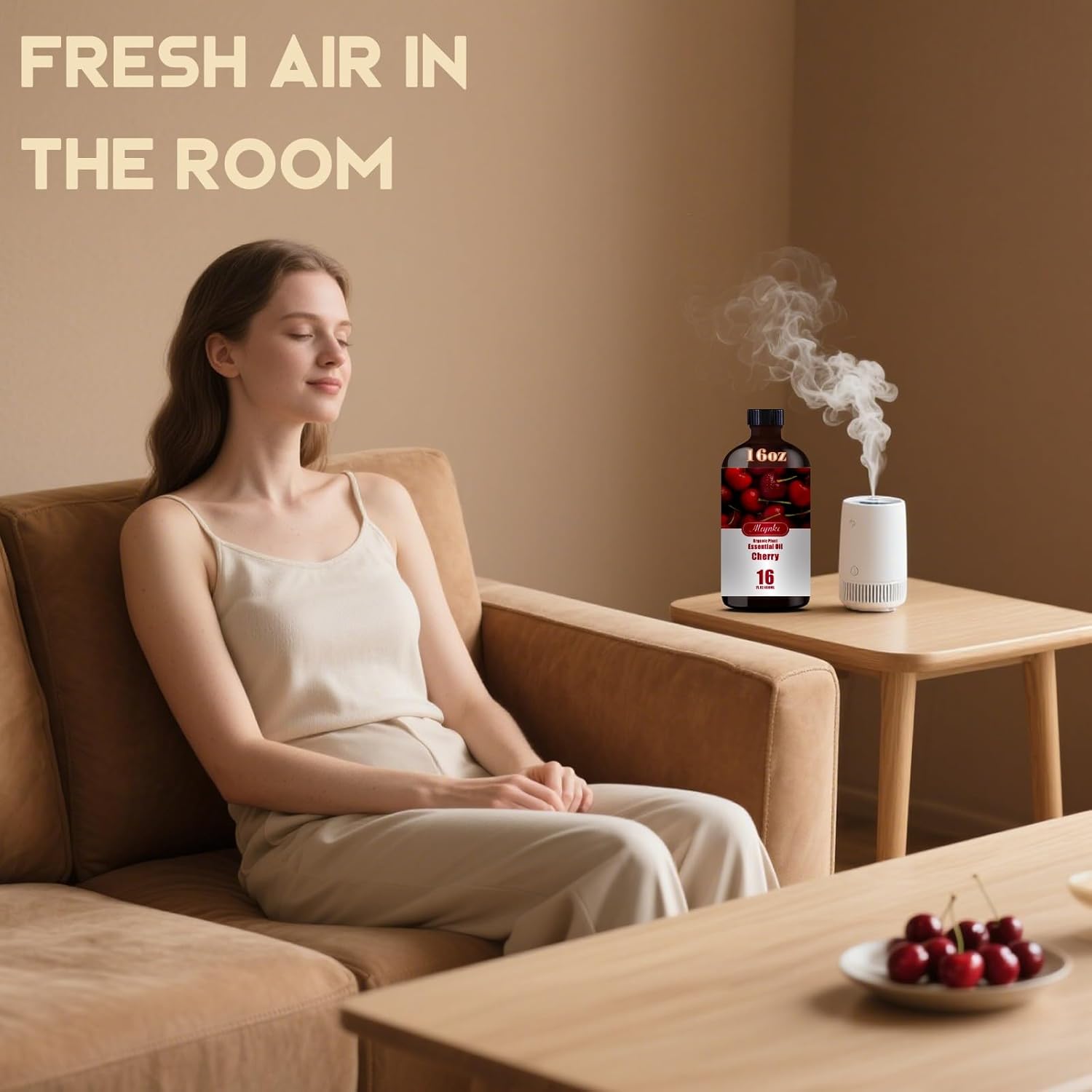 - * You can use multi-purpose essential oils - Cherry essential oil is suitable for aromatherapy machines and has many other uses. Use it for aromatherapy machines, humidifiers, home fragrance, spa, cleaning, massage, yoga, DIY candles, DIY soaps, perfume, car fragrance, bath balls, etc.