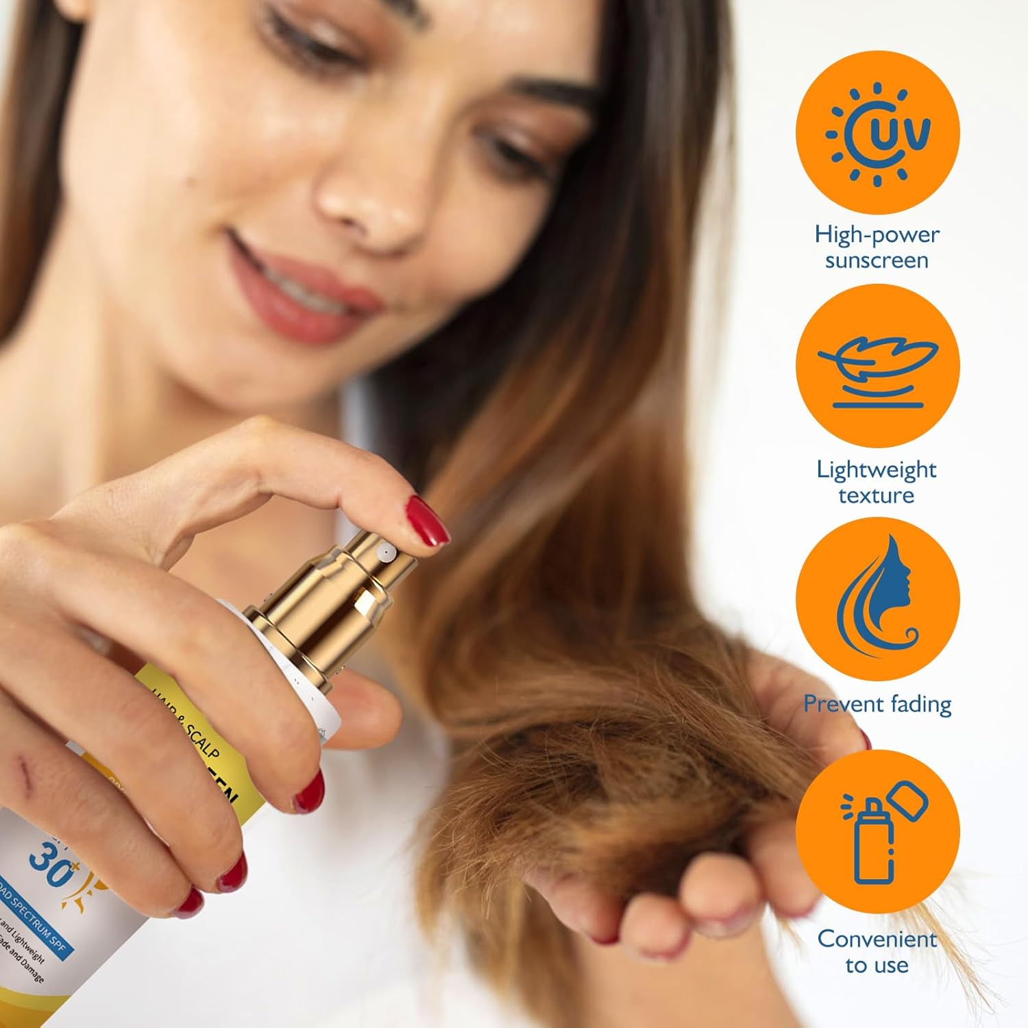 - STRONG SUN PROTECTION: Specially designed for color-treated or permed hair, this ultimate hair & scalp sunscreen spray SPF 30 blocks 98% of UV rays to prevent fading and dryness. Keep your hair shiny and vibrant, whether youβre at the beach or running errands.