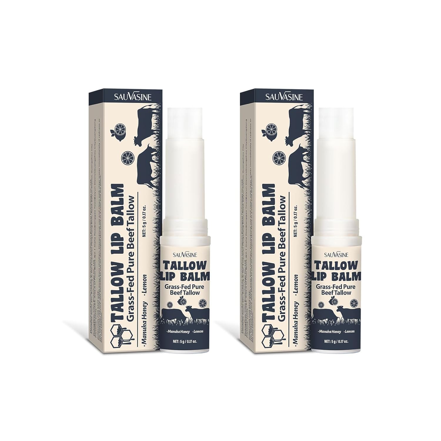 2PCS Tallow Lip Balm With Grass-Fed Beef Tallow & Manuka Honey Long-Lasting Moisturizing Lip For Cracked and Dull Lip, Natural Balm 5g/0.17oz
