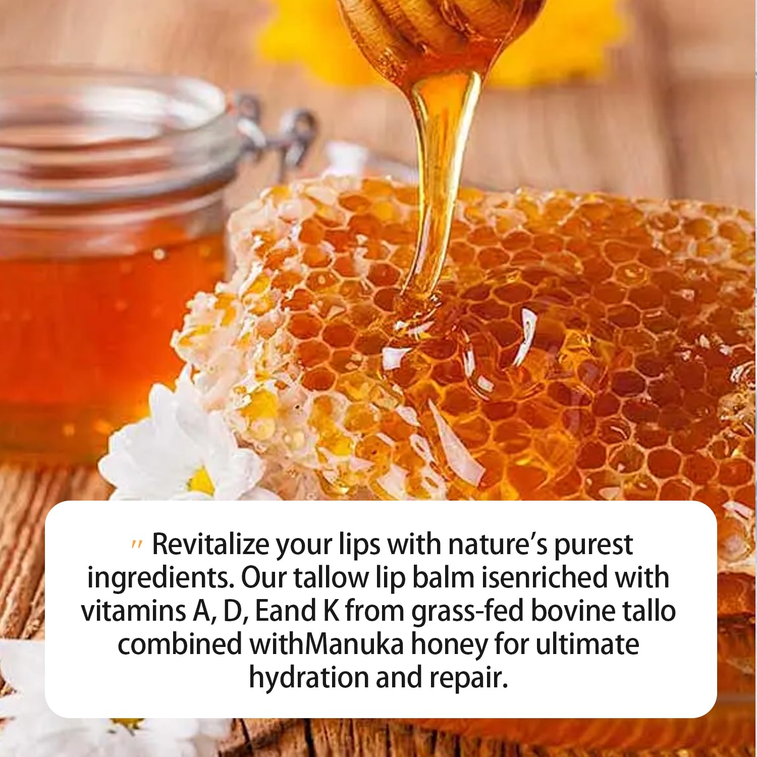- Grass-fed Beef Tallow &Manuka Honey Formula: Our tallow lip balm is crafted with high - quality natural tallow. Grass-fed beef tallow is rich in fatty acids and vitamins a, d, e, and k. Manuka Honey:antibacterial &healing properties. Jojoba Oil:mimics skin's natural oils which work together to deeply moisturize and protect your lips from dryness, cracking, and environmental damage.