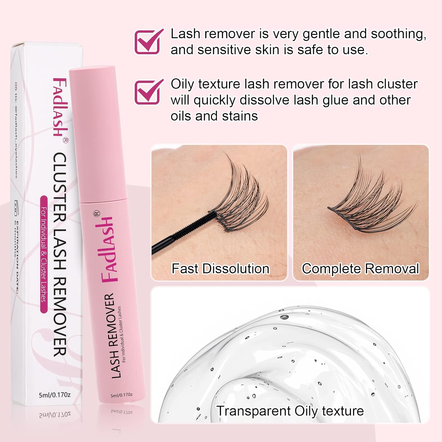 - Mild Formula: Cluster lash remover use safe formula, professionally tested many times, Our lash remover is very gentle and soothing, and sensitive skin is suitable to use.FADLASH lash remover for cluster lashes can be used on multiple types of lashes, so if you use clusters, false lashes, and strip lashes regularly and are looking for a good lash remover, look no further again! Click to take it home!