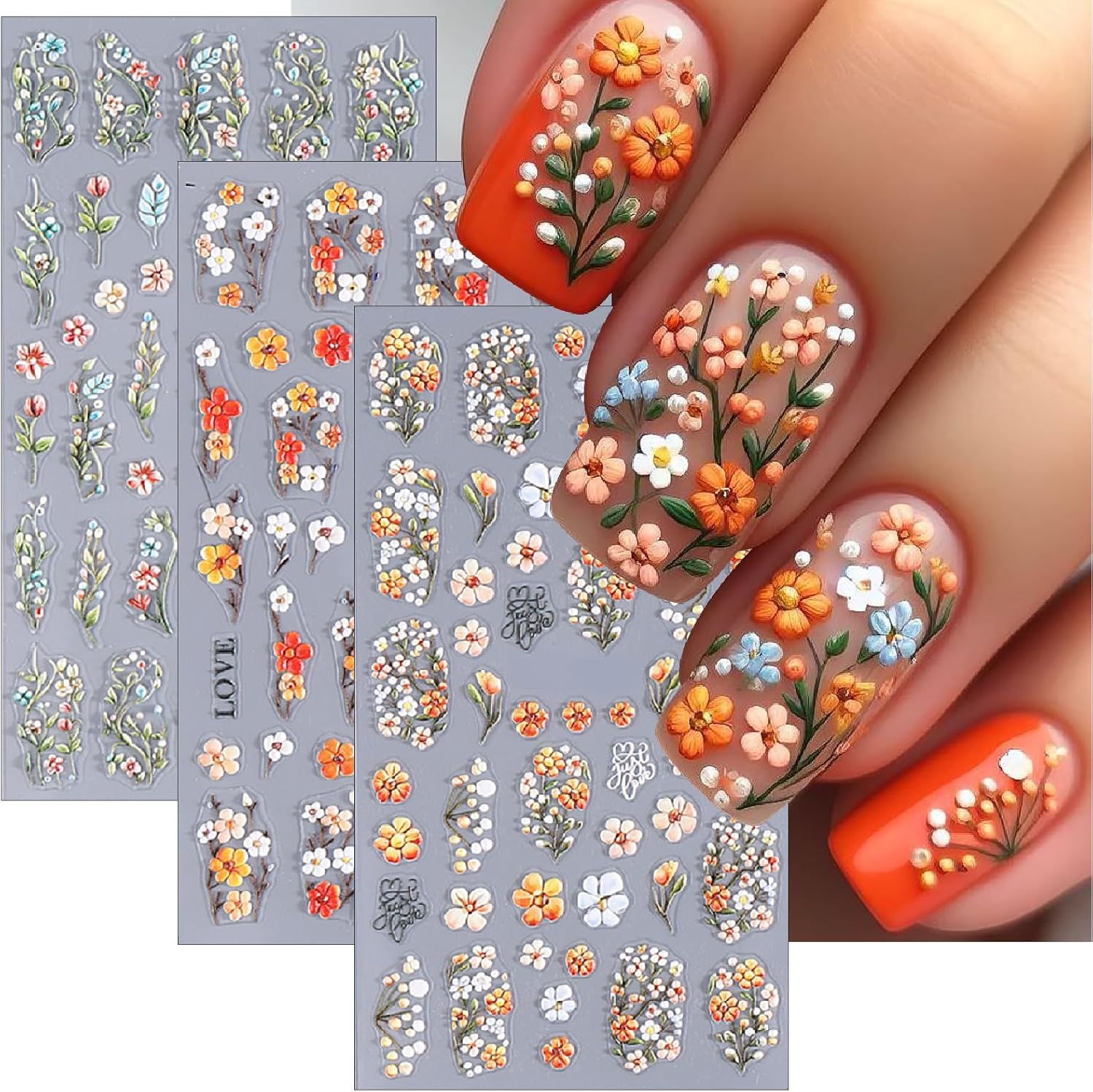 - Easy to Use:Orange floral nail stickers decal are self-adhesive,completing fashion-cool nail art design in just a few seconds. If you want to keep it for a long time, you need to apply nail polish on the surface for reinforcement