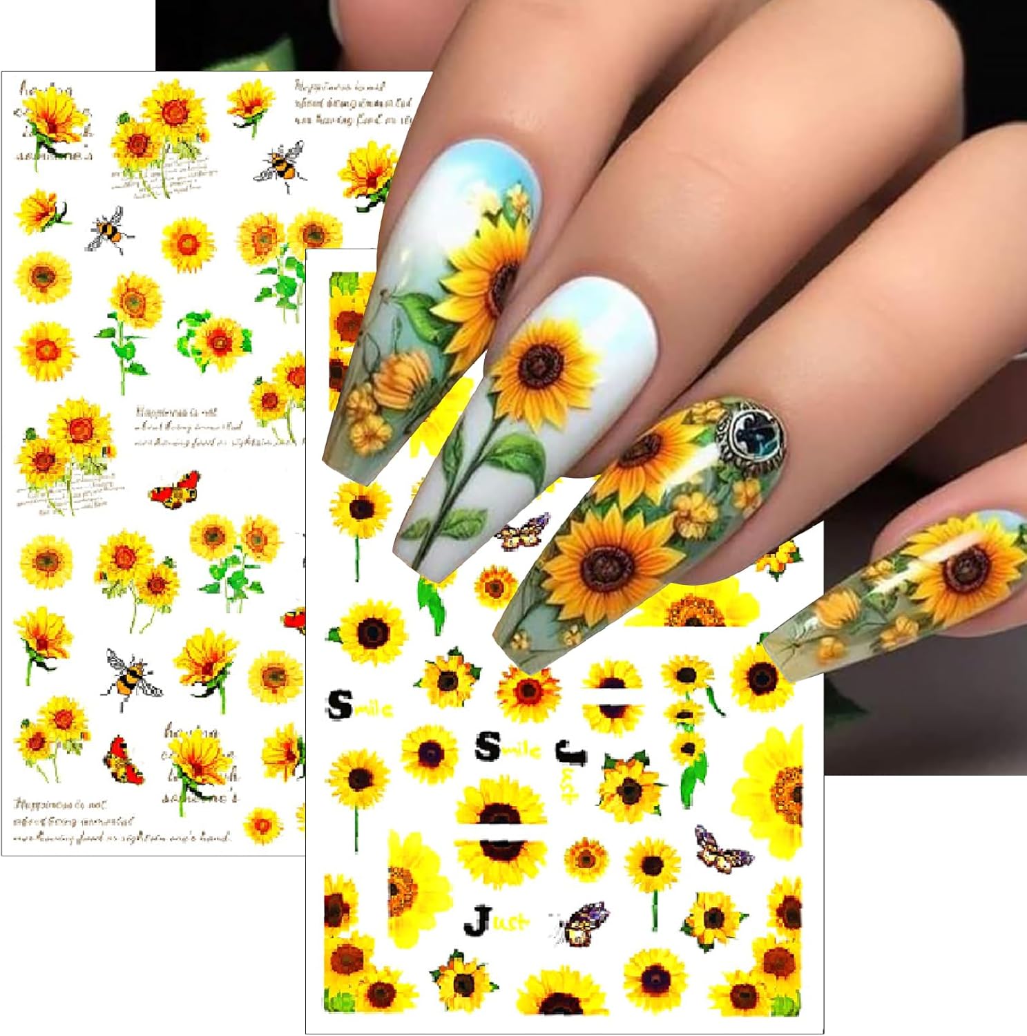 - Sunflower Nail Stickers- You will get 8 sheets cute yellow bee nail art stickers for acrylic nails supply, many pattern for you to choose,butterfly nail designs, and satisfy your rich imagination of nail DIY