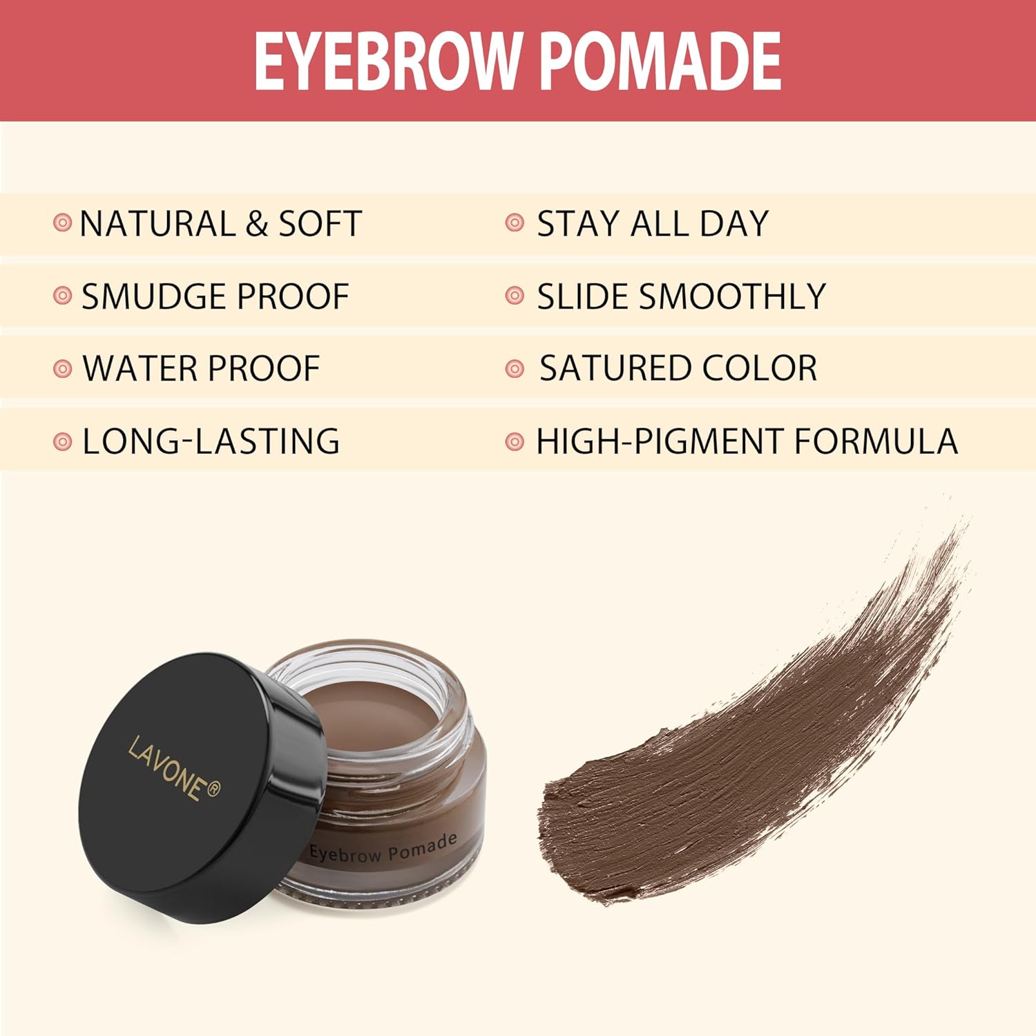 - Waterproof & Smudge-proof Eyebrow Pomade: LAVONE eye brow pomade with highly-pigmented formula keeps your brows firmly in place all day without smudging. Itโs long-lasting, smudge-proof and waterproof making them great for swimming, warmer weather or active days.