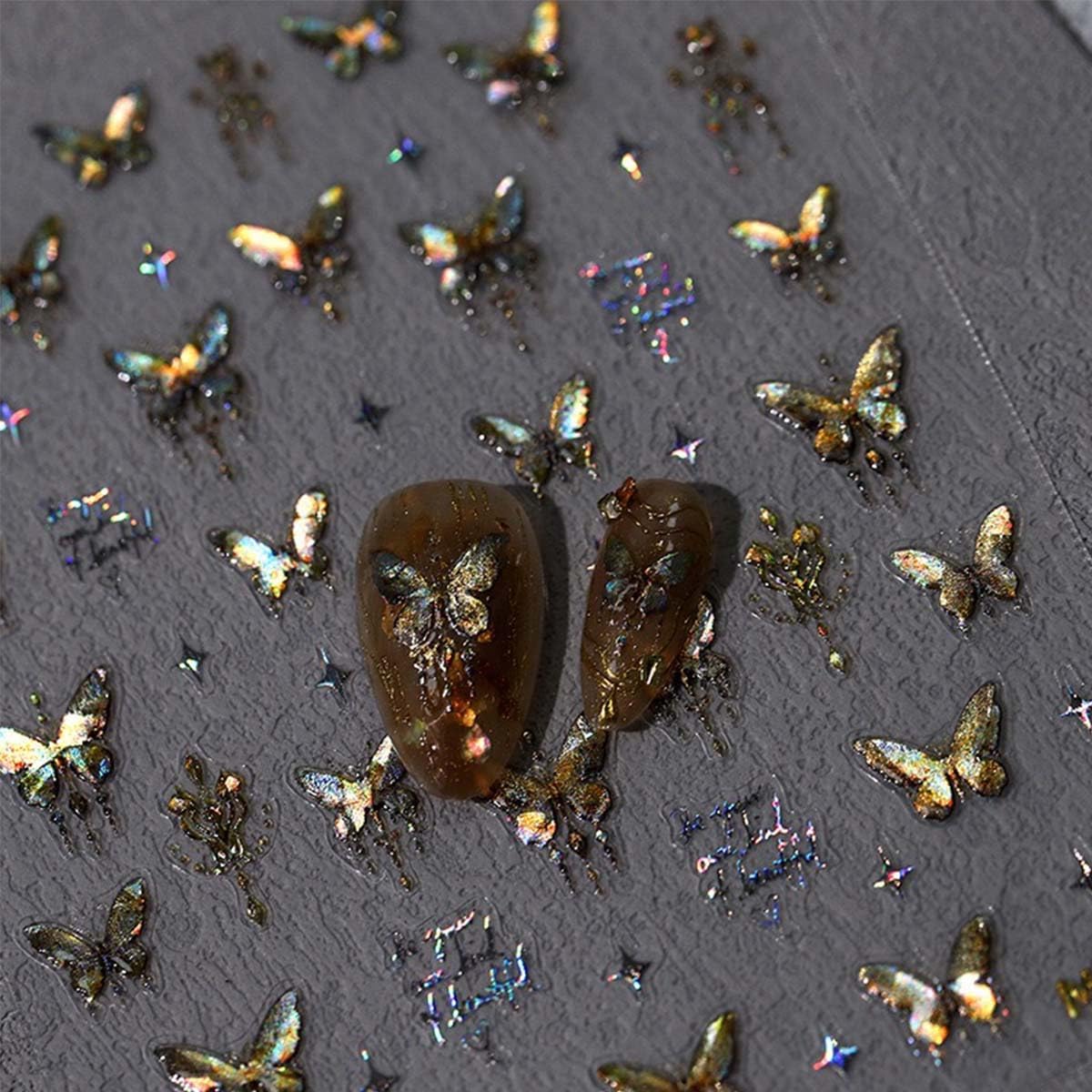 Butterfly Nail Art Stickers 5D Embossed Jelly Nail Decals Aurora Gold Butterfly Nail Stickers Self Adhesive Butterflies Nails Supplies for Women Girls Manicure Decoration 1Sheet