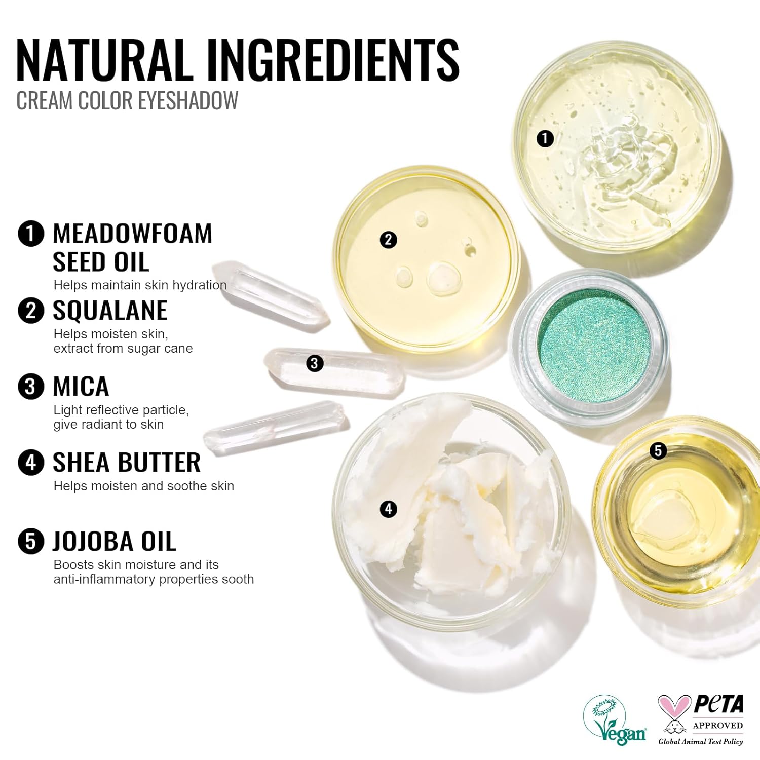 - Vegan & Hypoallergenic: Oulac cream eyeshadow is 100% vegan, We never test on animals. It won't hurt your skin and you can use it with confidence