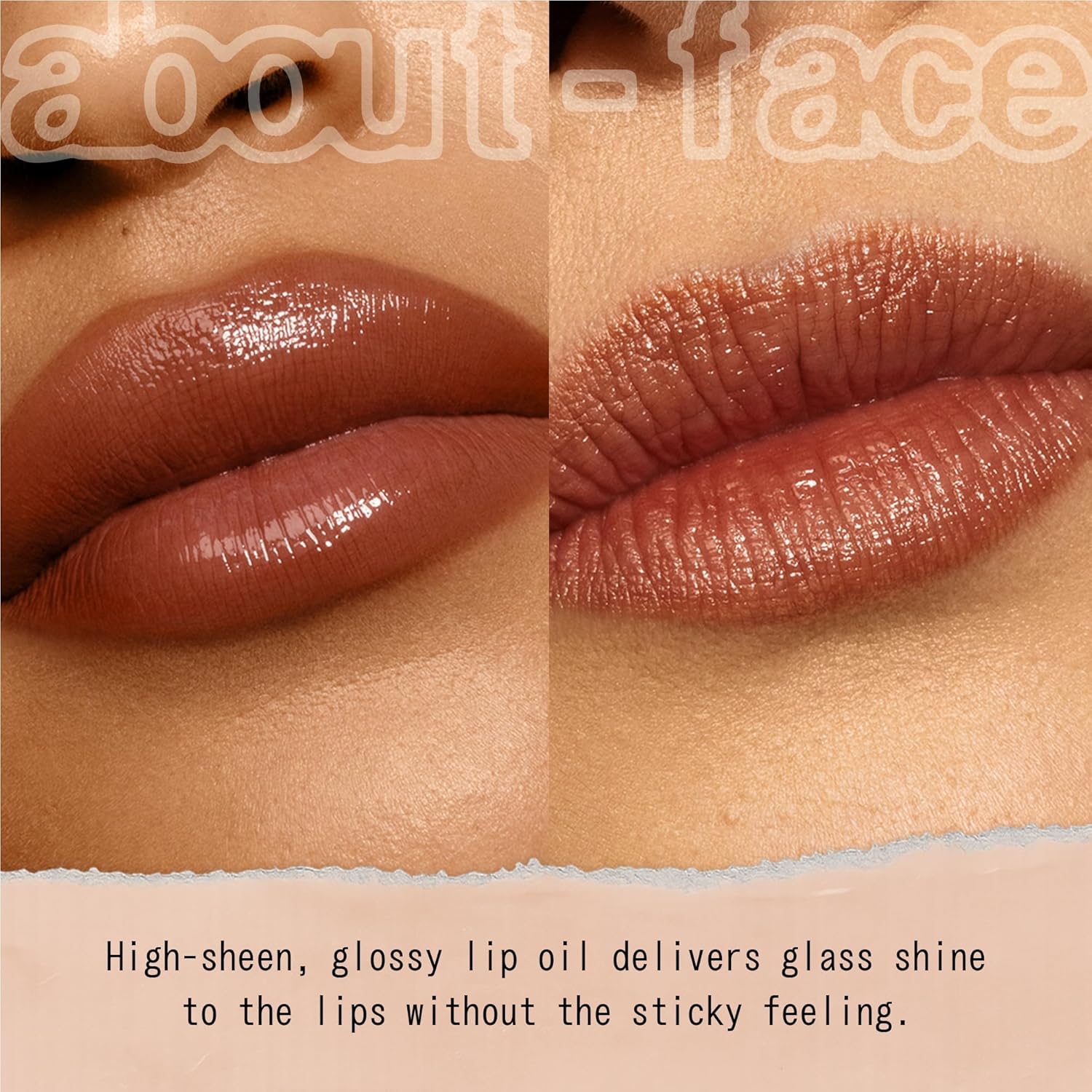 about-face Light Lock Lip Gloss Feel It All – Non-Sticky, High-Shine Lip Oil Gloss with Coconut Oil, Peppermint & Lavender – Vegan, Cruelty-Free, Clean Beauty – 0.21 oz (Milk Chocolate)