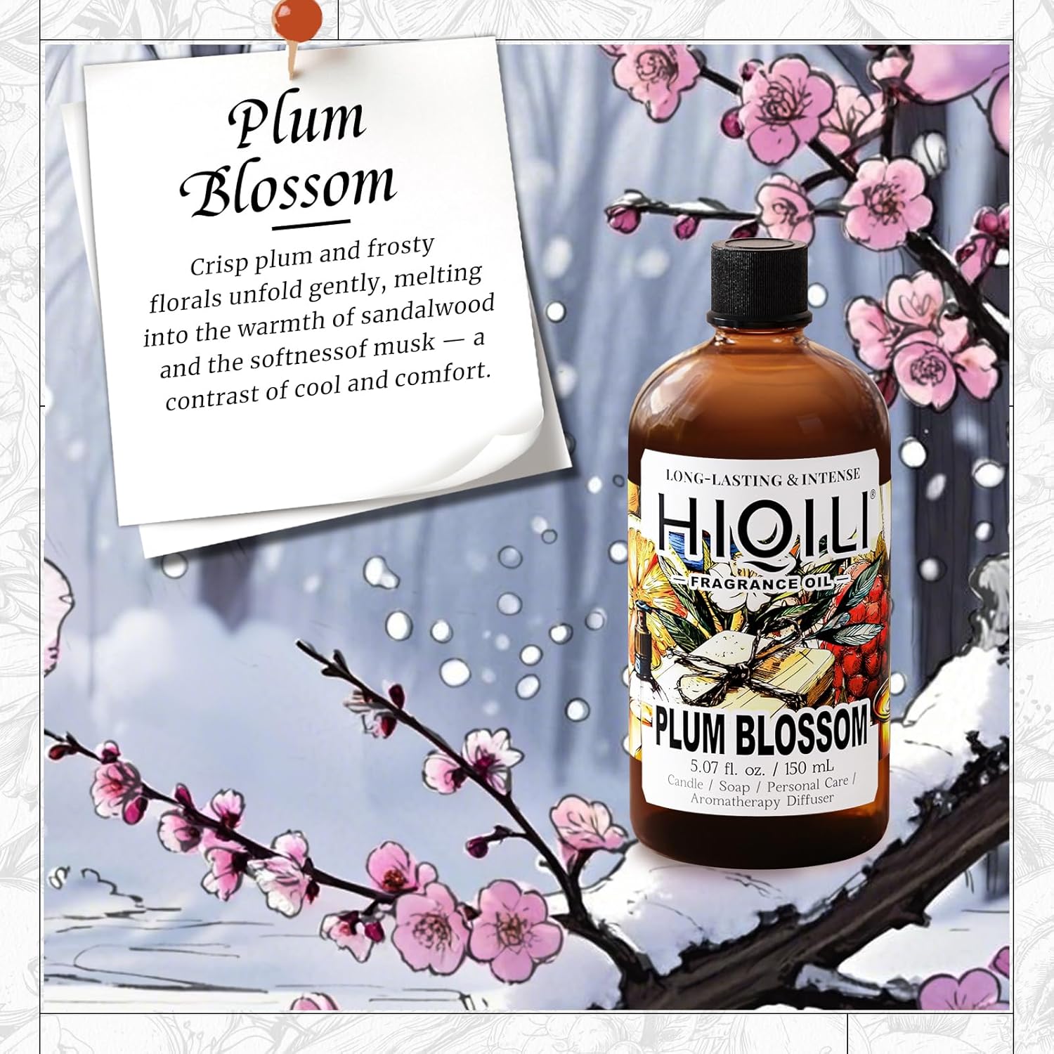 HIQILI Plum Blossom Fragrance Oil for Making Candle, Soap, Inspired by J-M.Lone Plum-Bloom, Linen Spray and Scented Sachets, Use in Essential Oil Diffuser - 5.07 Fl Oz