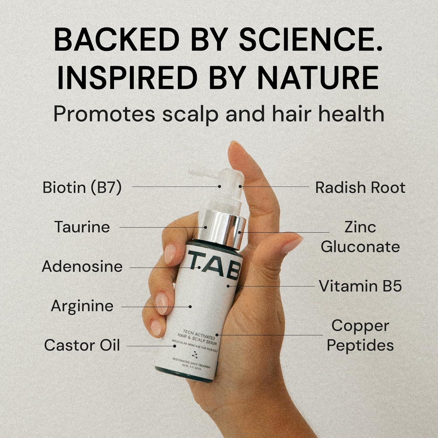 TAB Tech Activated Hair and Scalp Serum, Hair Loss Support Formula without Minoxidil for Men & Women, Oil-Free, Lightweight, Daily Leave-In, Non-Greasy, Fragrance-Free, Fast Absorbing - 2.7 fl oz