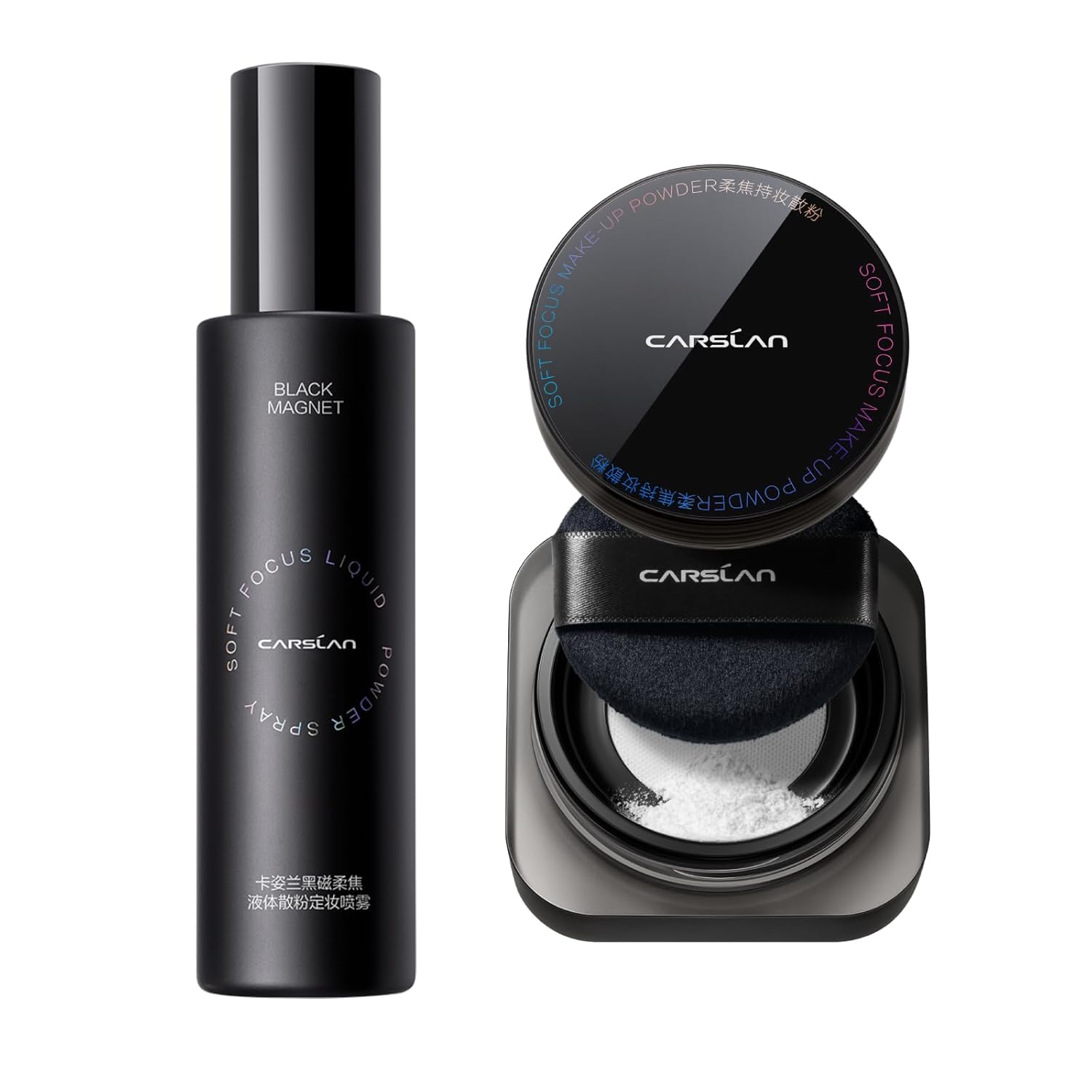 1.0 Soft Focus Setting Powder + Black Magnet Setting Spray, All Day Longlasting Makeup Set