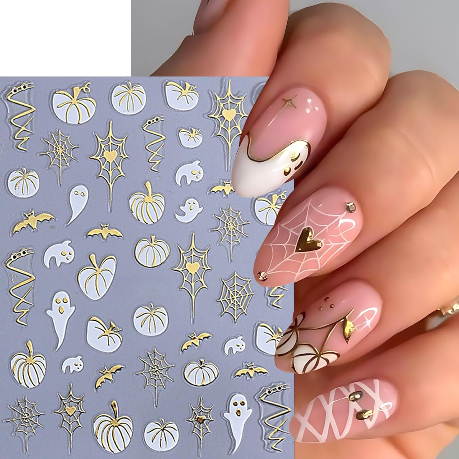 - Easy to Use: This halloween golden heart spider web nail stickers for nail art is self-adhesive. just use tweezers to tear off the cute nail stickers, and then stick the 3d nail stickers on the nail.You can also use nail gel to cover to make the beautiful stickers last longer