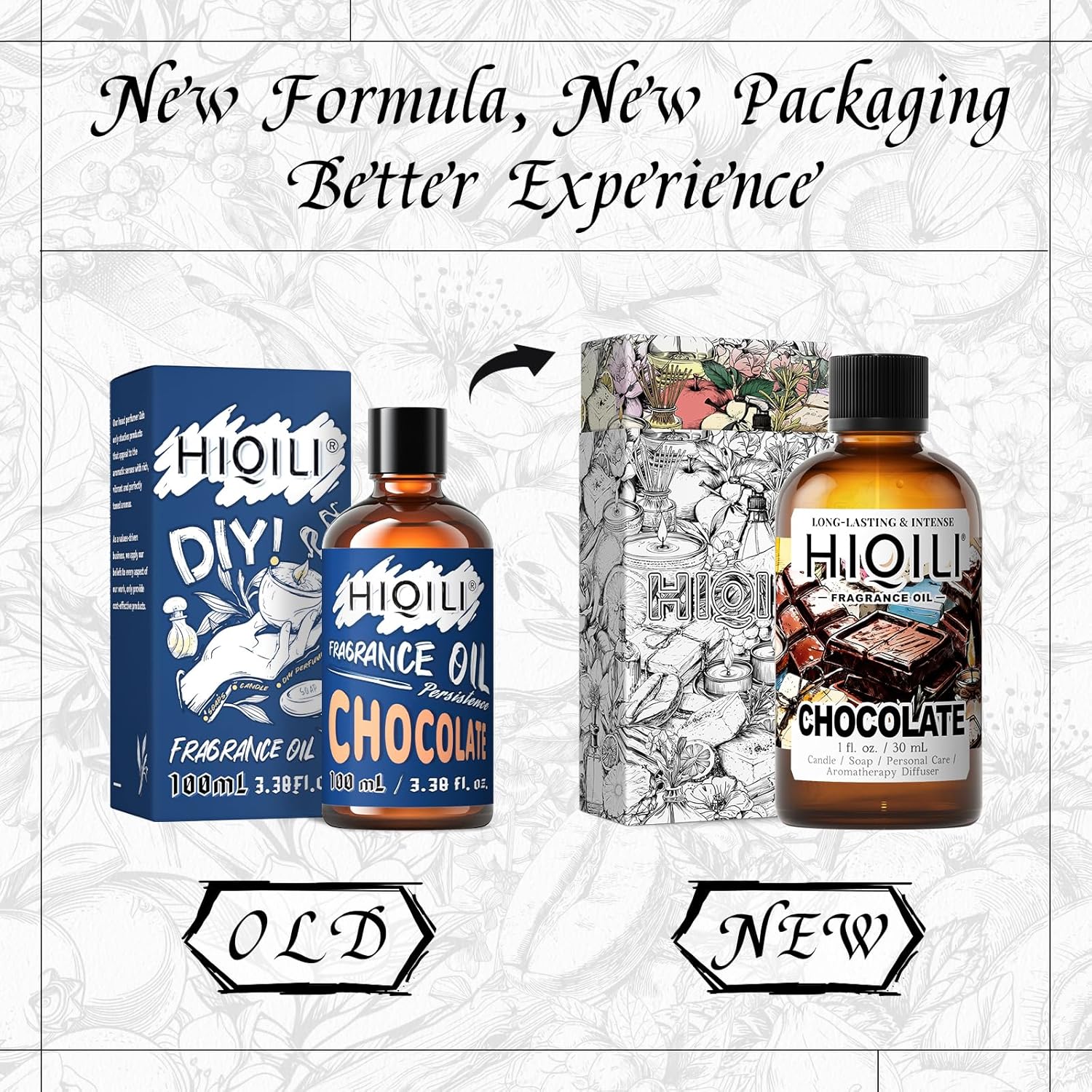 HIQILI Chocolate Fragrance Oil for DIY Candle, Soap & Bath Salts Making, Long Lasting Scents for Home Essential Oil Diffuser - 1 Fl Oz