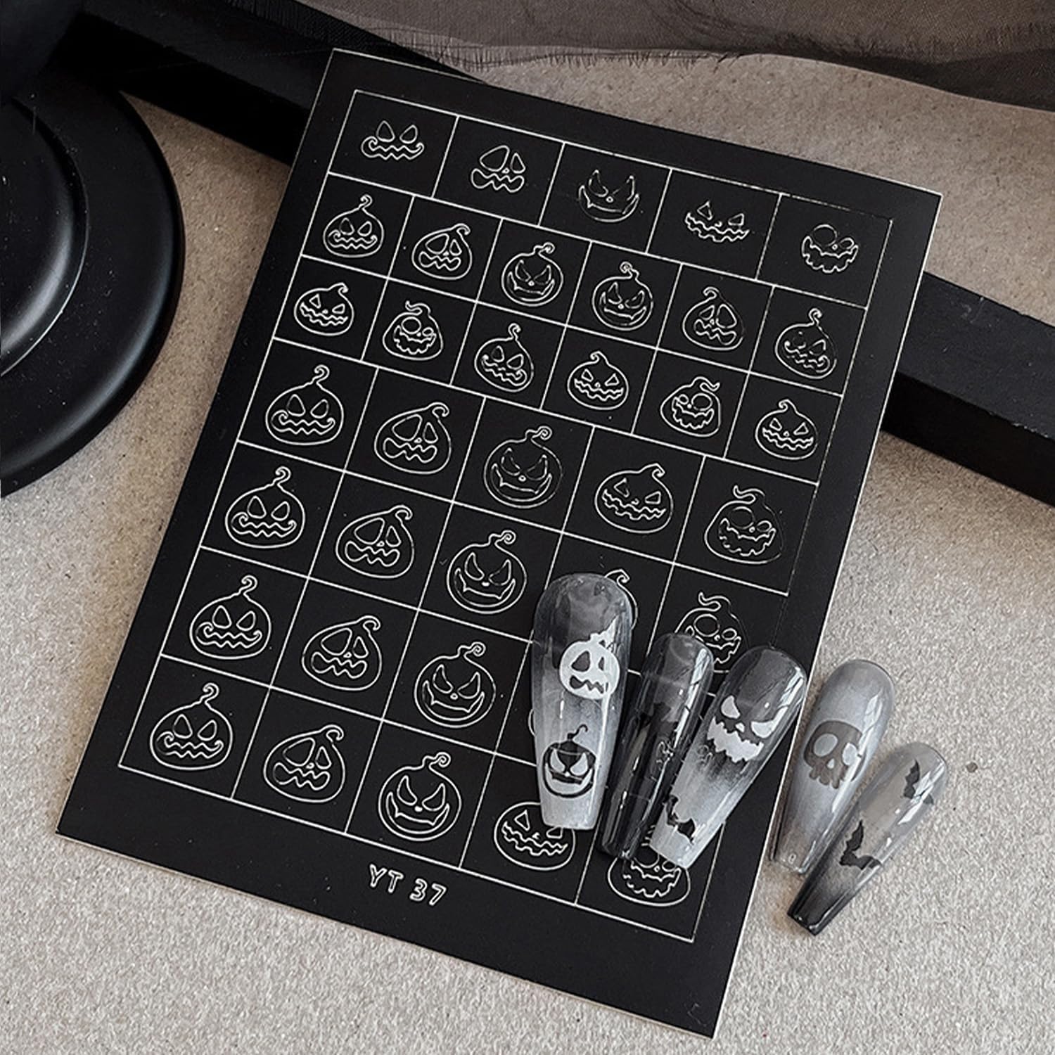 - Special Nail Designs:6 sheets airbrush stencils 3D self-adhesive stickers, the nail decals contain skull ghost witch bat pumpkin grimace designs, the best choice for halloween manicure,let you get a different manicure every day, it provides you with a variety of options to give full play to your rich imagination of nail DIY.