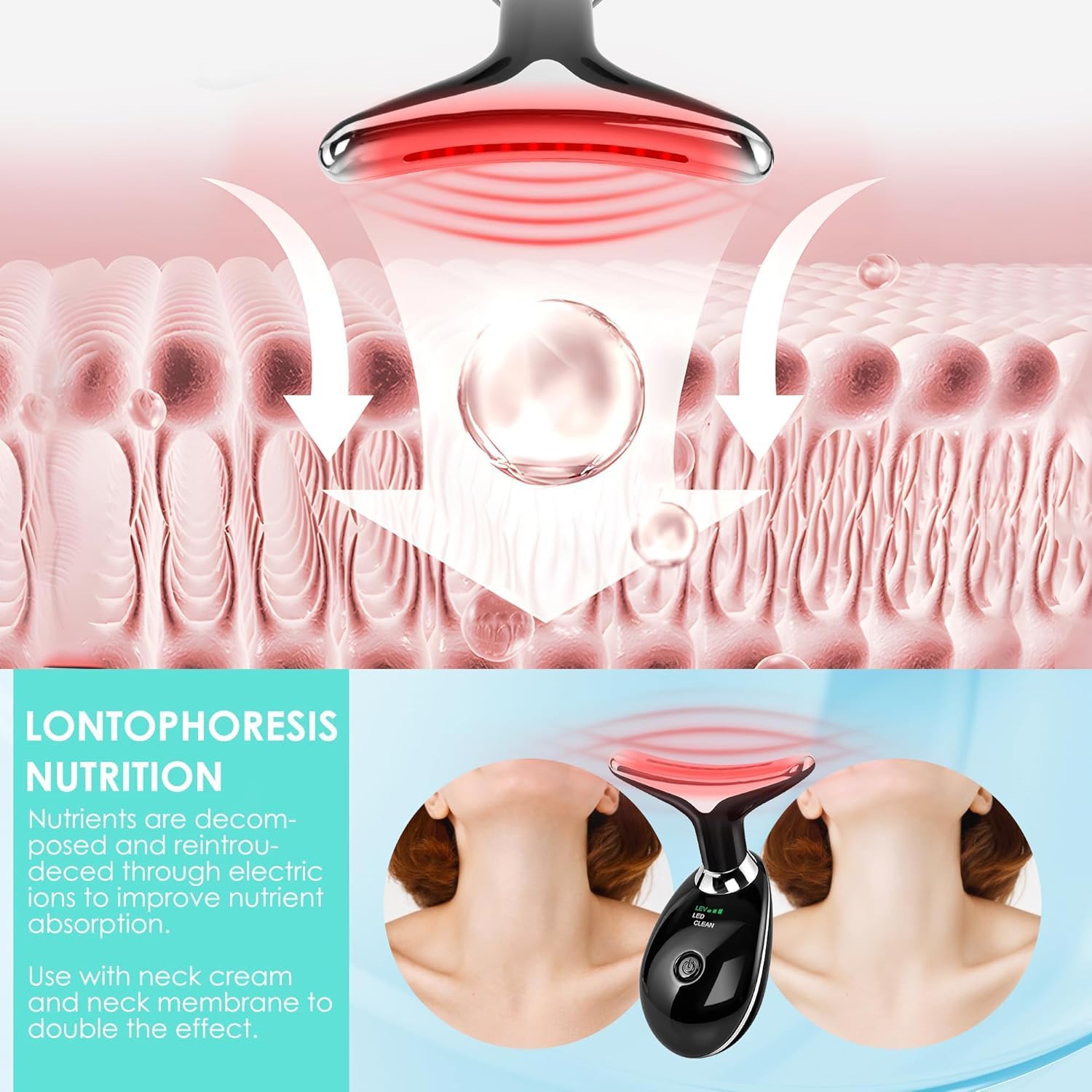 - The uniquely curved Arc massage head effortlessly glides along your face, helping to improve absorption of creams and lotions