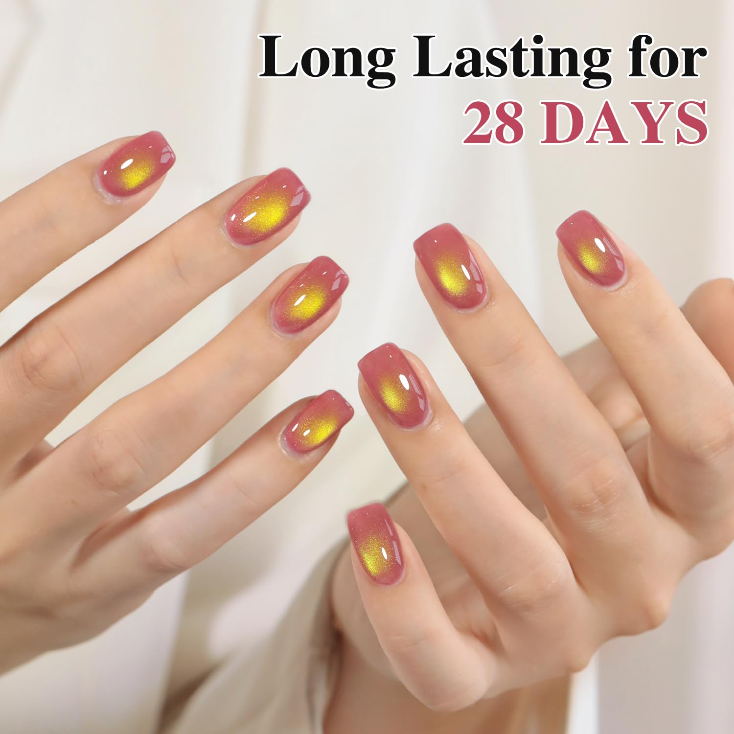 - Cat Eye Gel Nail Polish : Double Rhythm cat eye gel nail polish kit includes 1 color 15ml / 0.5 fl.oz gel nail polish. The cat eye gel can be combined with different bacse colors arbitrarily, you can get different colors nail art.You can use different base coat to creat different sytles.