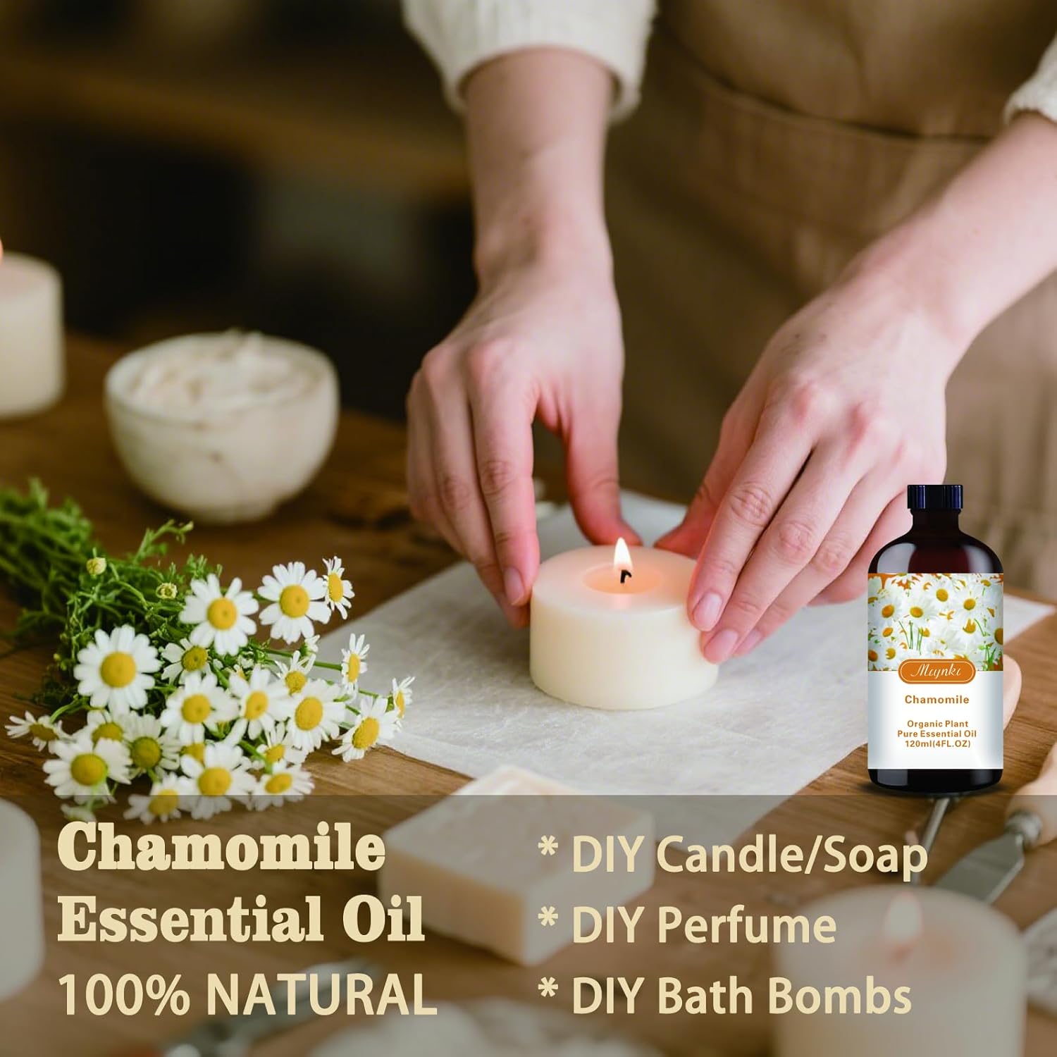 Chamomile Essential Oil-Chamomile Fragrance Oil 4.33oz (130ml)-100% Pure Natural Scent for Diffusers, Candles, Soap Making & Aromatherapy-Relaxing Home & Gift Essential Oil for Bath, Massage