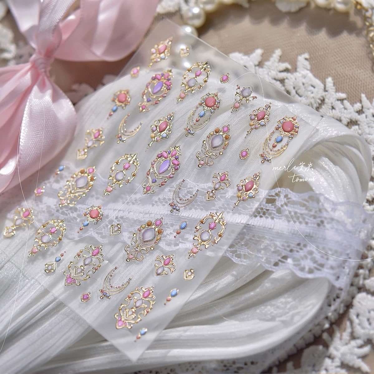 - Easy to Use: 5D necklace design nail stickers for nail art are self-adhesive, just remove sticker then stick this 5D nail decals on your nail. Apply top coat gel to seal to make the stickers last longer.