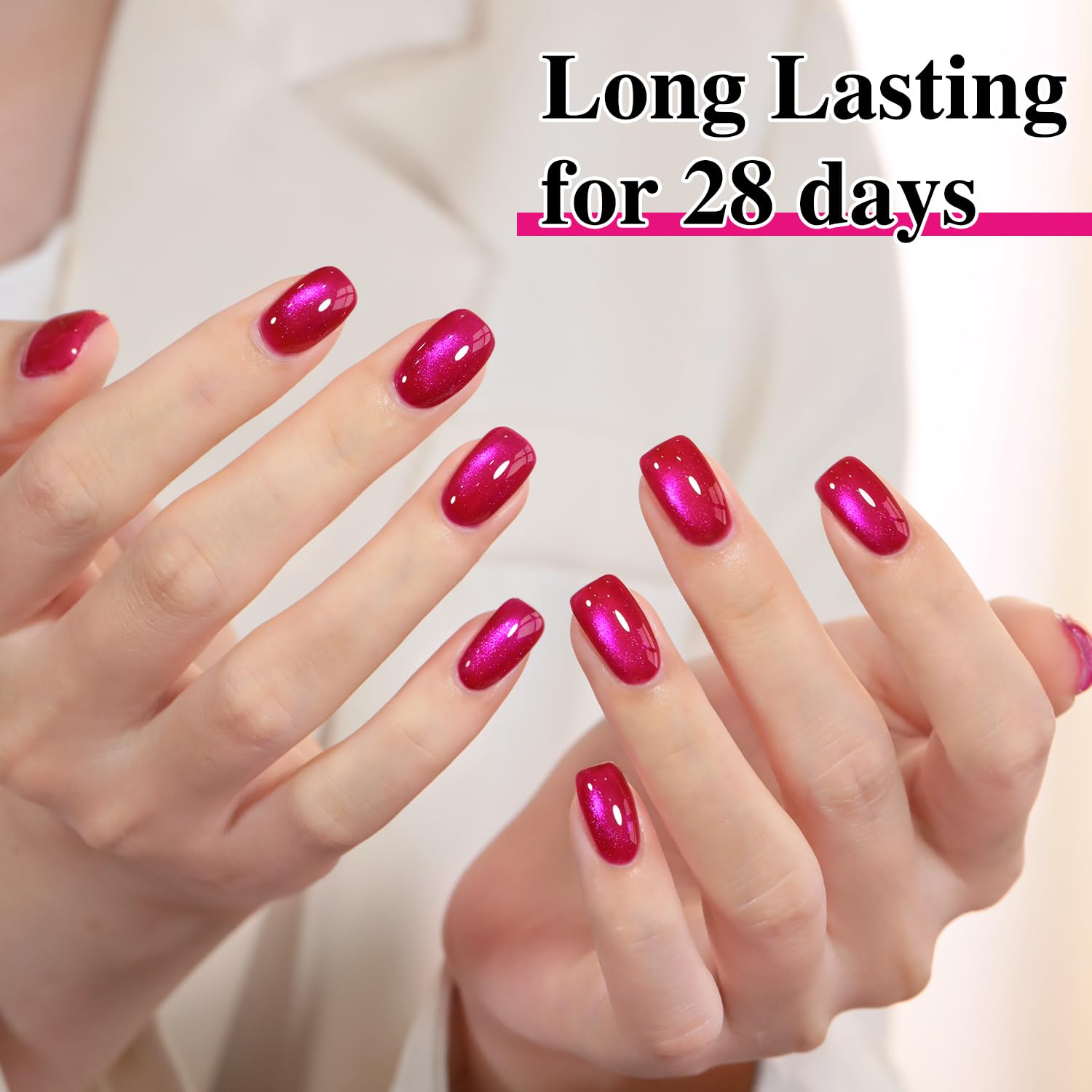 - Cat Eye Gel Nail Polish : Double Rhythm cat eye gel nail polish kit includes 1 color 15ml / 0.5 fl.oz gel nail polish.Come with same color gel with same color bottle and magnet .The cat eye gel can be combined with different bacse colors arbitrarily, you can get different colors nail art.You can use different base coat to creat different sytles.