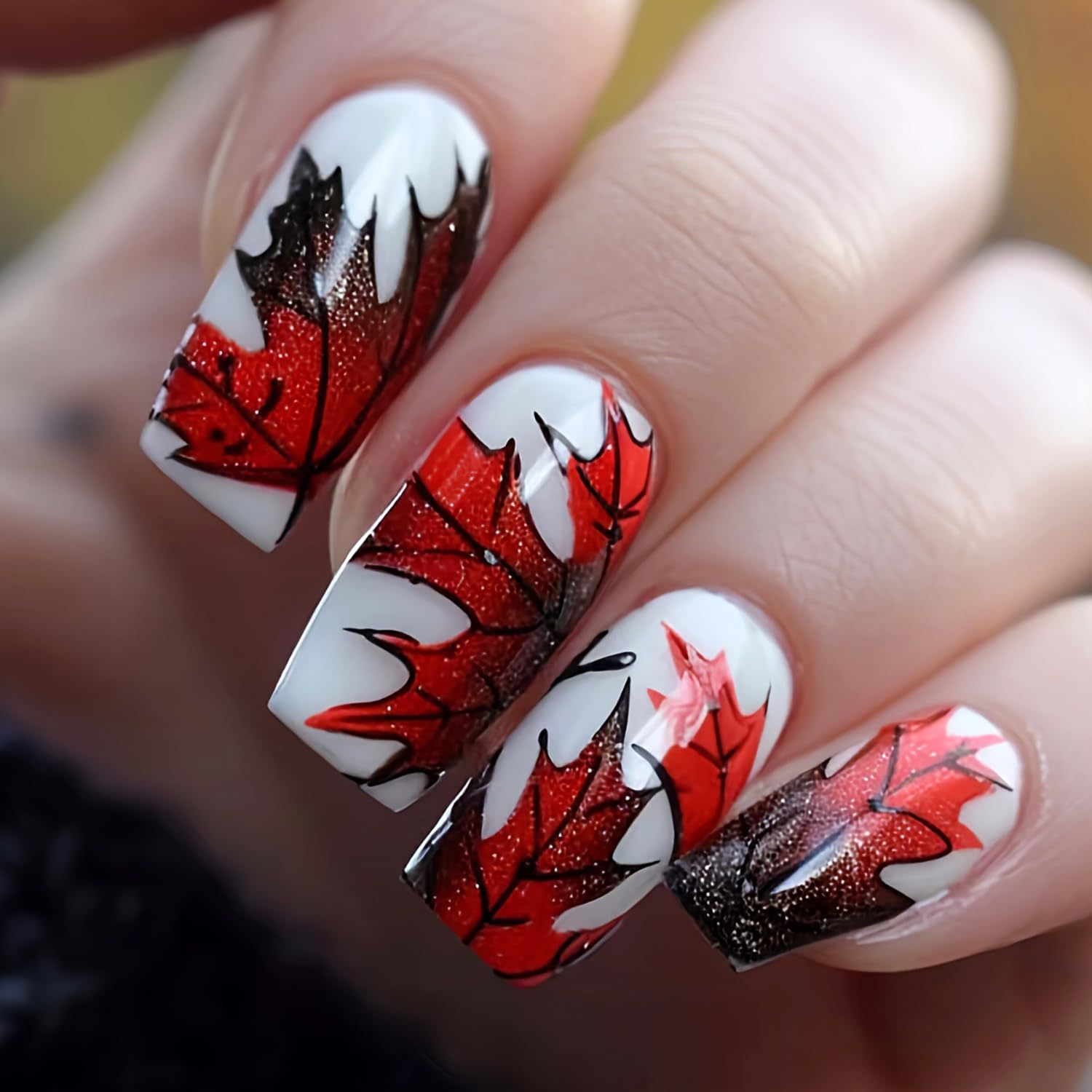 - Easy to Use: Instead of spend lots time and money at nail salon, you can change you nails style in 15 minutes anytime and anywhere. The maple leaves fake nails will stay longer if you clean your nails before use, and avoid water within the first hour of wearing