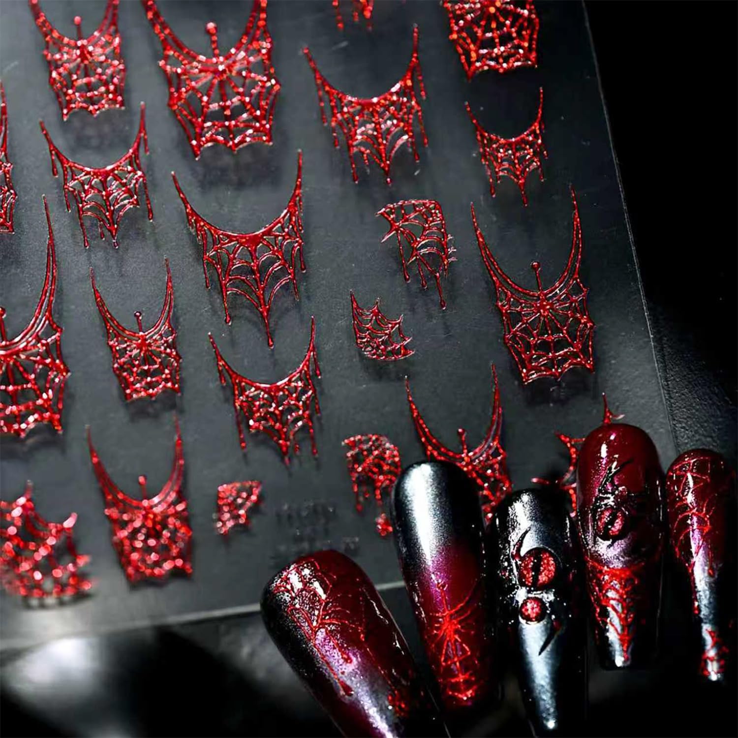 - Self-Adhesive Design: 5D self-adhesive red spider web nail decals for nail art design is simple and quick to use, Halloween nail art decals work great on bare nails, they will stay on for a long time and will not peel off your nails, enjoy the feeling of nail art