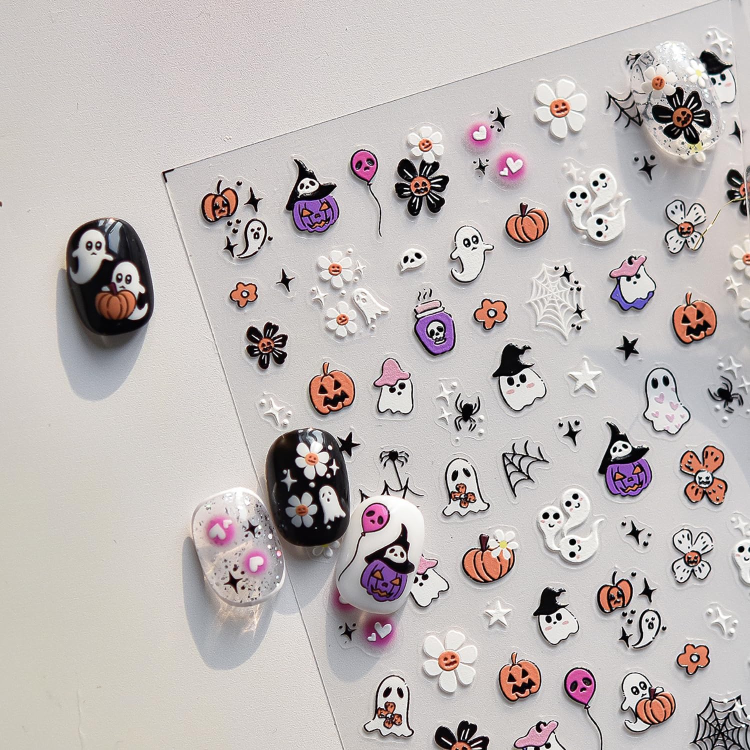 - Halloween Nail Stickers: You will receive cute ghost halloween nail stickers with diverse patterns and rich colors. You can use your imagination to DIY and change to different styles to make you happier!