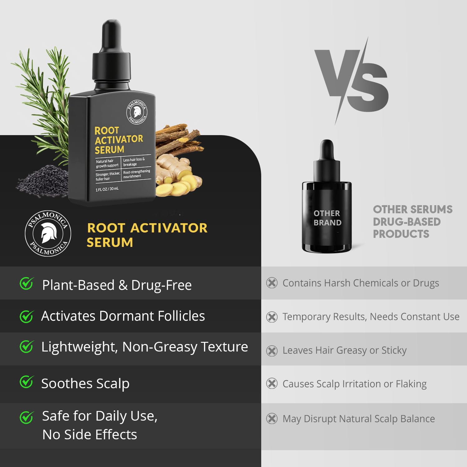 - ✅ Formula Inspired by Root Activator Shampoo – This upgraded hair growth serum blends herbal extracts like rosemary, ginger, and black sesame to nourish the scalp and support visible regrowth.